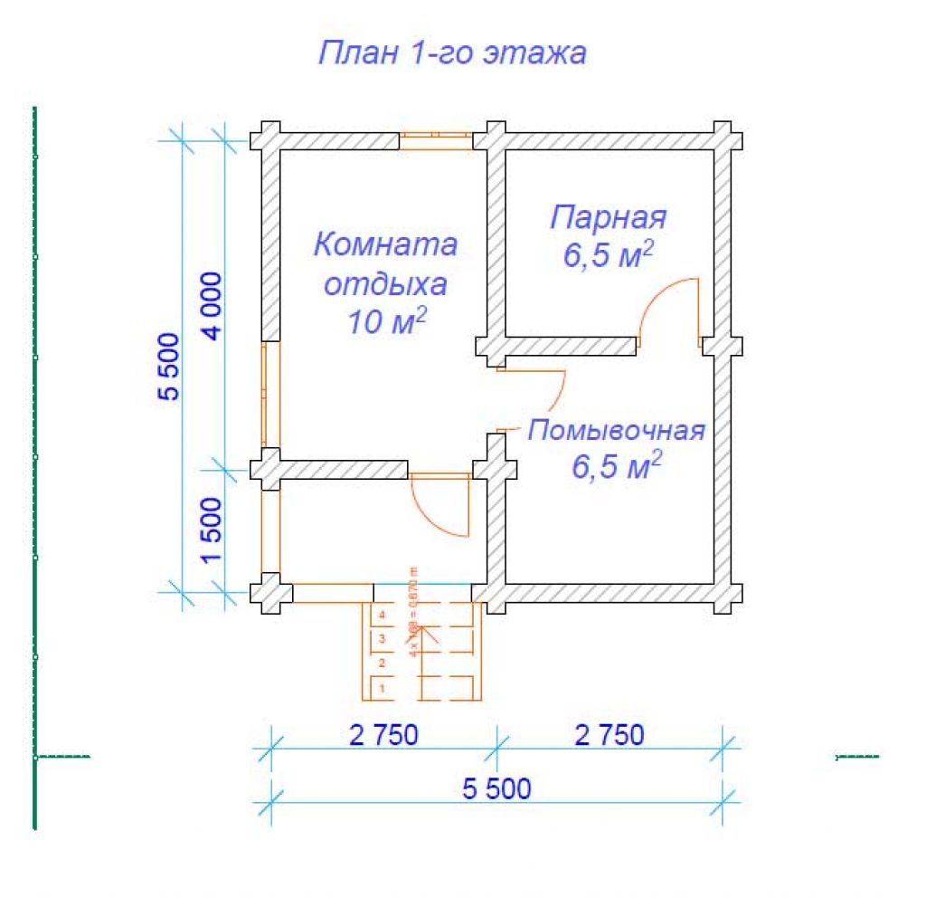 Проект бани представляет собой желанную «золотую середину»: здесь гармонично сочетаются простота и комфорт.