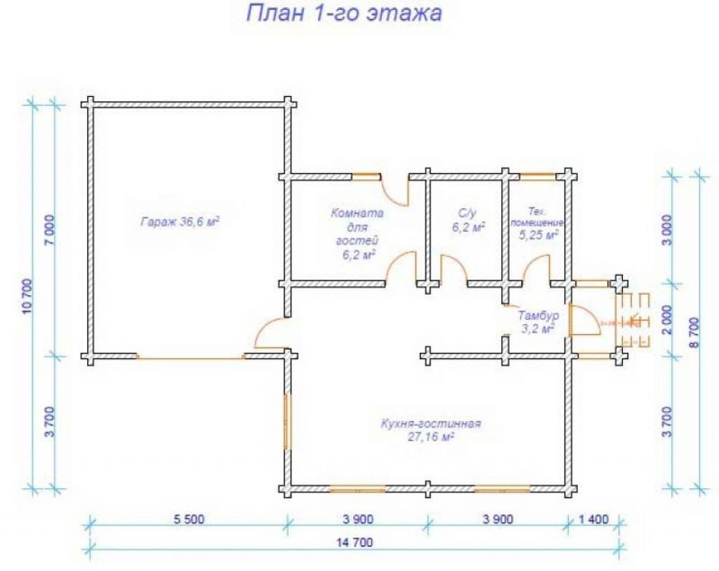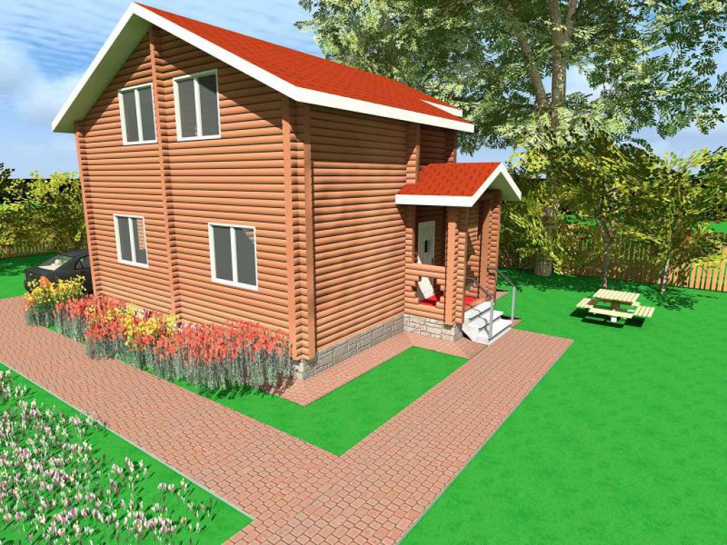 Проект деревянного загородного дома с эксплуатируемой жилой мансардой и пристроенным гаражом на один автомобиль.