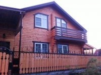 Городецкий Большой. - Дом с мансардой и широким крыльцом. На первом этаже расположена просторная гостиная, кухня, холл, санузел и тамбур. На втором этаже - три спальни, ванная и холл.