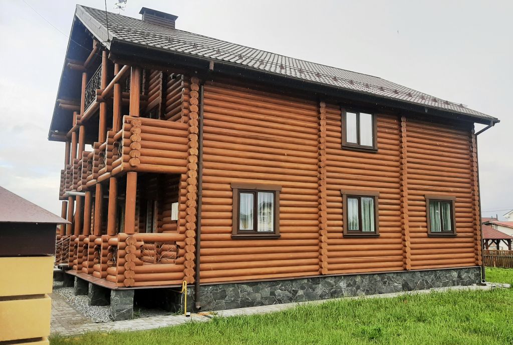Ярмарочный– большой и высокий дом из оцилиндрованного бревна 240 мм диаметра с эксклюзивным резным фасадом будет выделять ваше родовое гнездо среди окружающих.