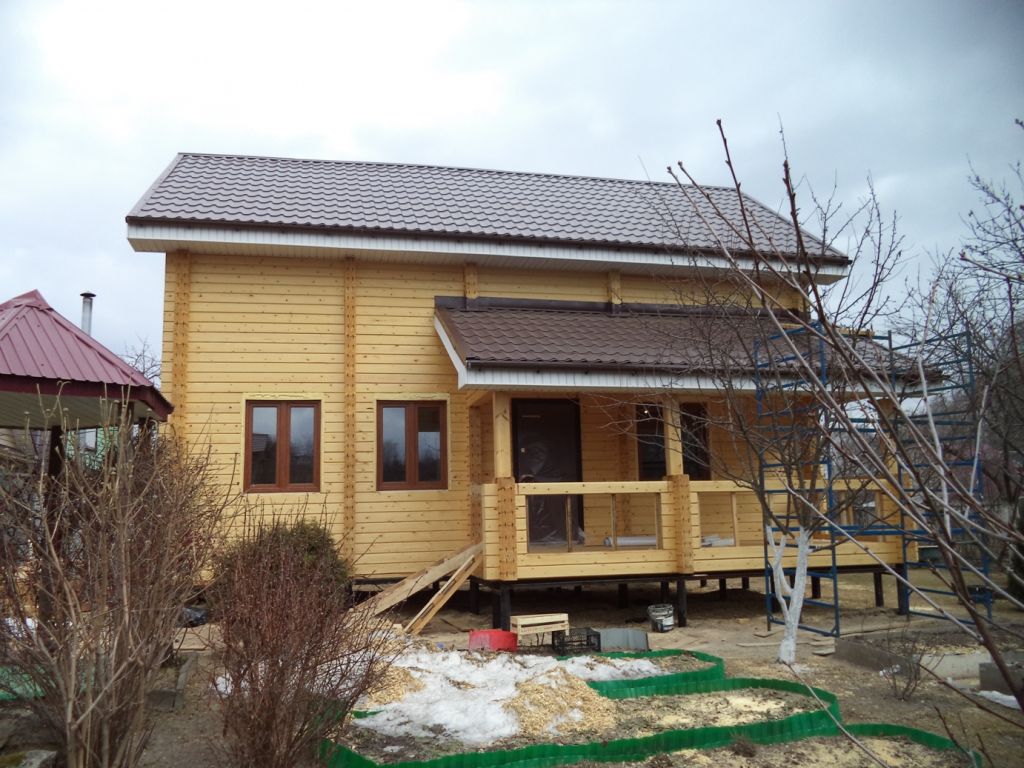 Виктория – дом из профилированного бруса камерной сушки построен по индивидуальному проекту с большой верандой, для отдыха на лоне природы в зарослях вишни.