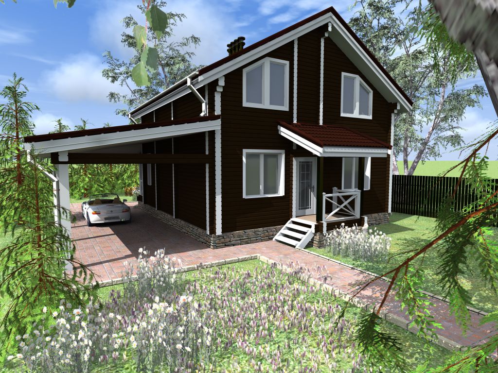 Симпатичный коттедж из профилированного бруса с продуманным решением внутреннего пространства и архитектурой для требовательного хозяина.
