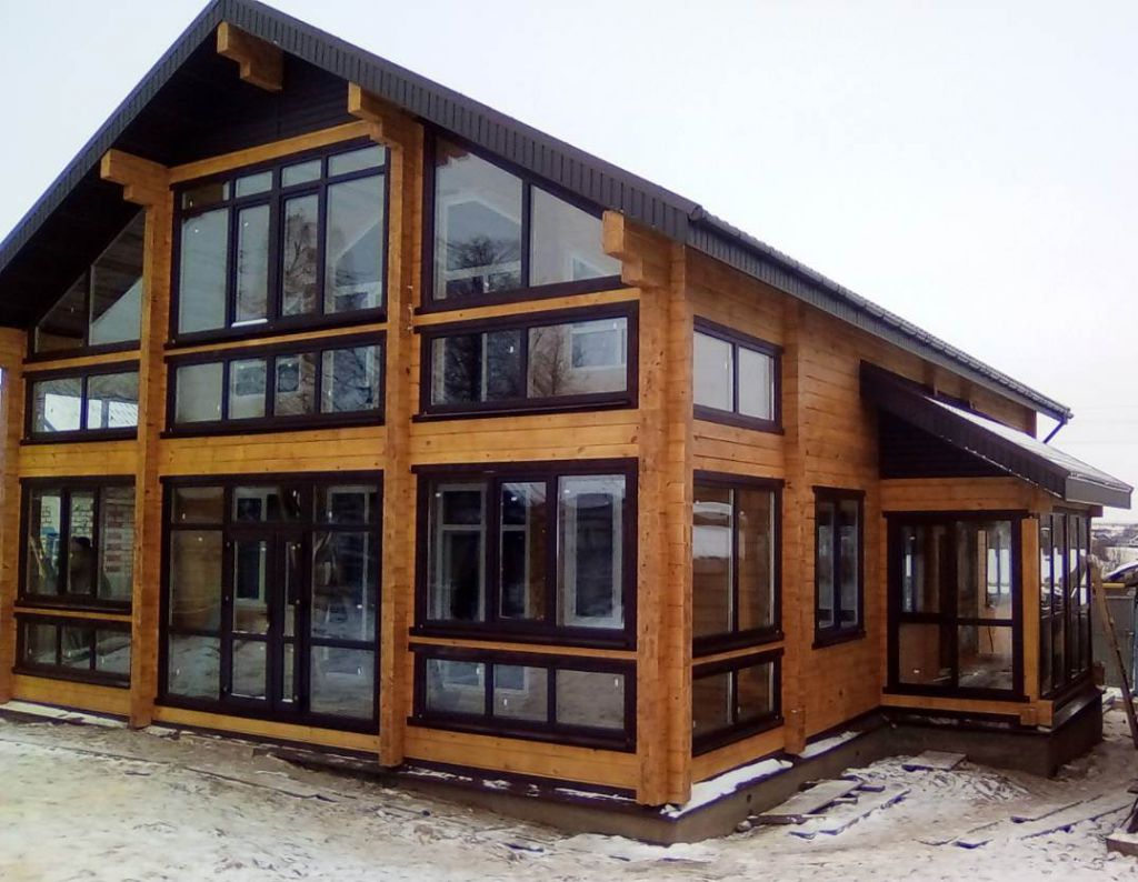 Строительство дома Ятманкино - Представляем проект двухэтажного дома из клееного бруса современного дизайна, повышенной комфортности в планировке. Если Вы тяготеете к европейскому облику зданий, но при этом стремитесь жить в экологичном деревянном жилье, то этот домик Вас заинтересует. Отличается он классическим и удобным расположением комнат. 275 м2