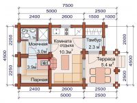 Небольшая баня с понятным гармоничным расположением парной и моечной . Просторная комната для отдыха.