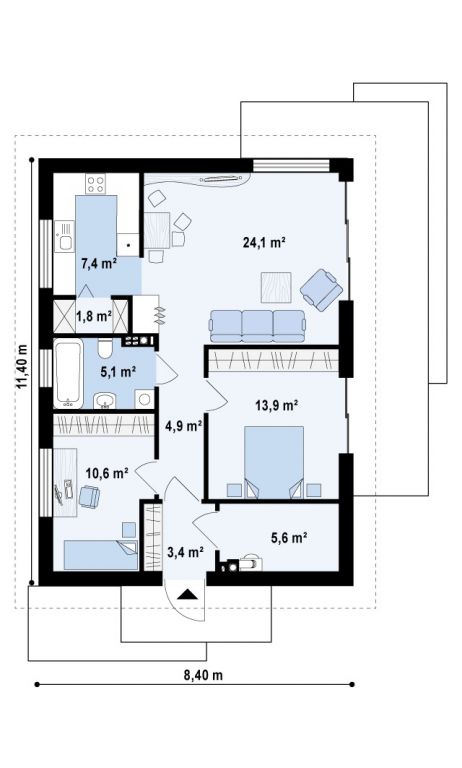 Этот проект дома может быть реализован в Оцилиндрованном бревне камерной