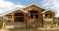Дом «Суморьево» можно отнести к изысканному варианту одноэтажного дома из оцилиндрованного бревна. Несмотря на то, что это здание одноэтажное, оно таит в себе несколько комфортных комнат, раздольную гостиную, кухню, санузел и конечно же массивное крыльцо.