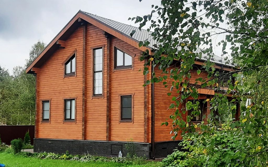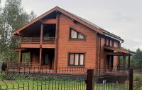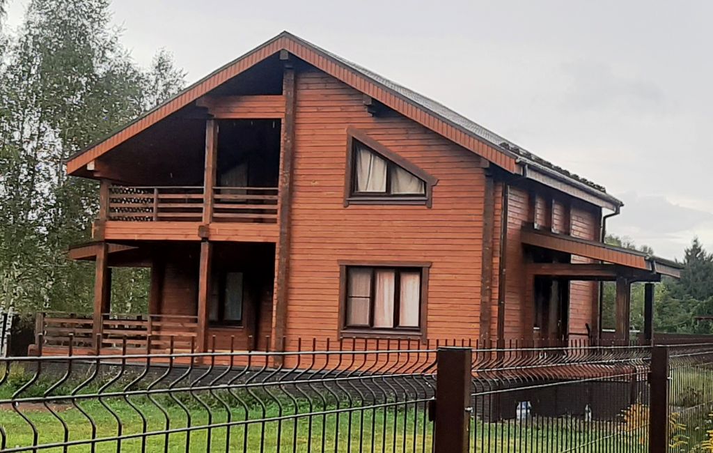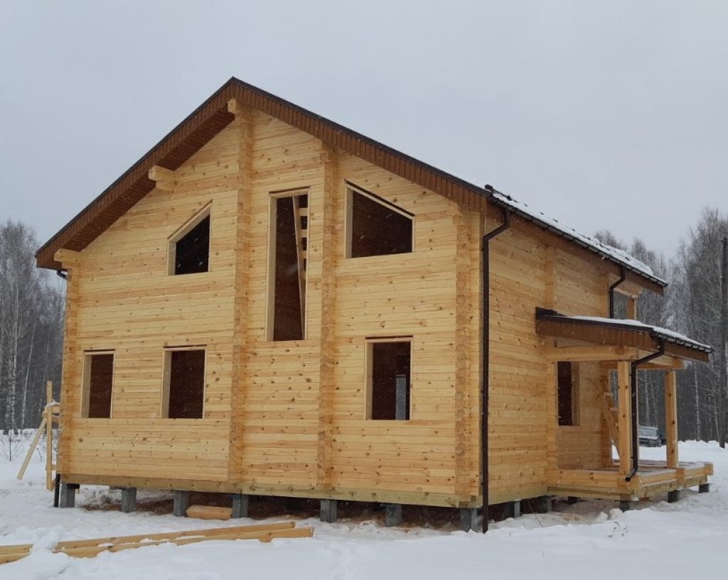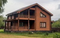 Городищи - Загородный коттедж из профилированного бруса размером 195х145мм. На двух этажах этого красавца разместились четыре комнаты, которые можно обустроить как детскую, кабинет, игровую или гостевую – тут выбор за вами. Внизу красивая угловая терраса, удобное крыльцо. На втором этаже кроме комнат, есть уютный балкон.