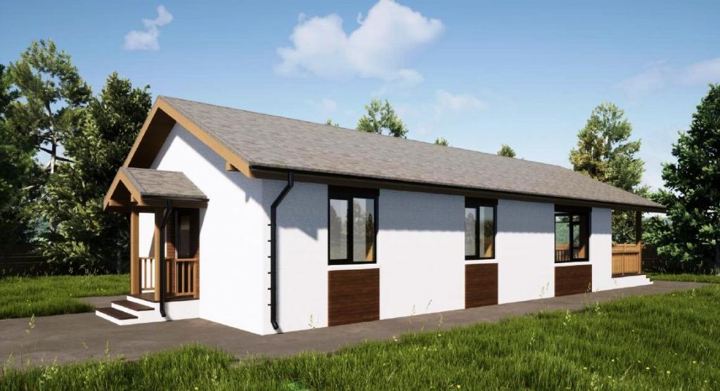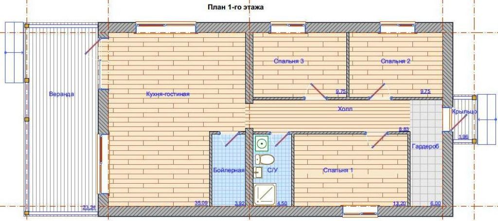 Этот проект дома может быть реализован в Оцилиндрованном бревне камерной
