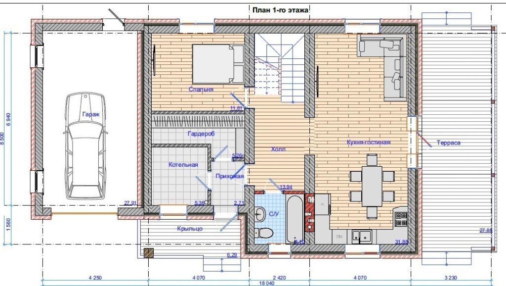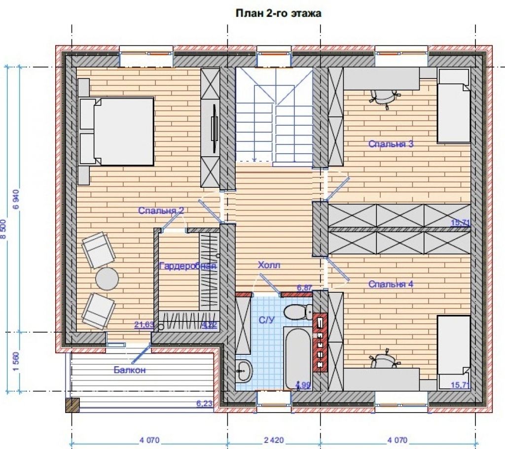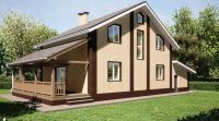 Этот проект дома может быть реализован в Оцилиндрованном бревне камерной