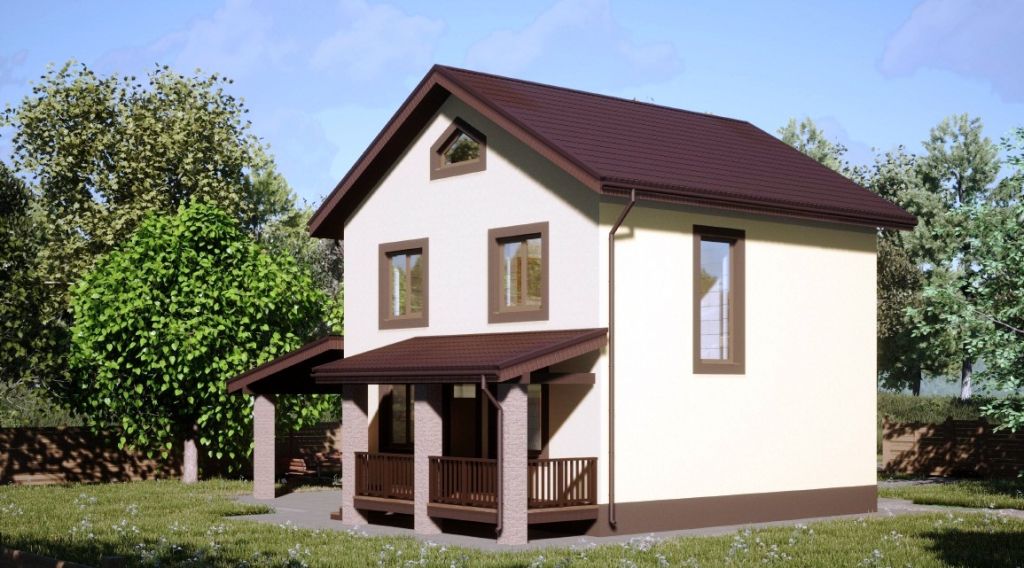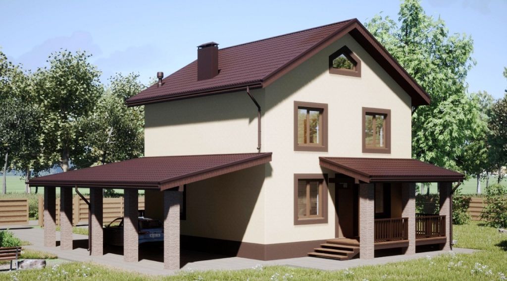 Этот проект дома может быть реализован в Оцилиндрованном бревне камерной