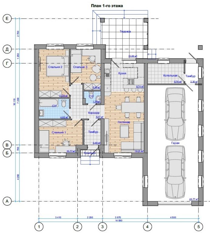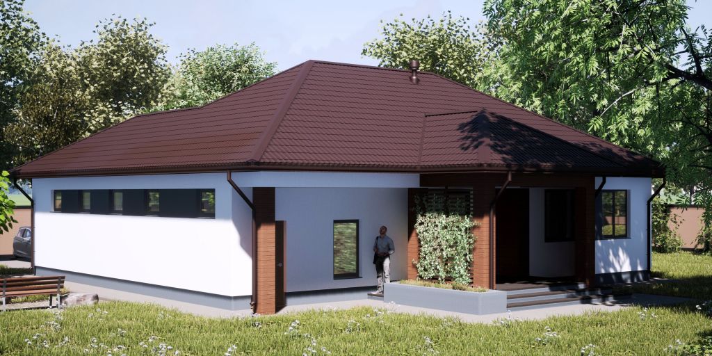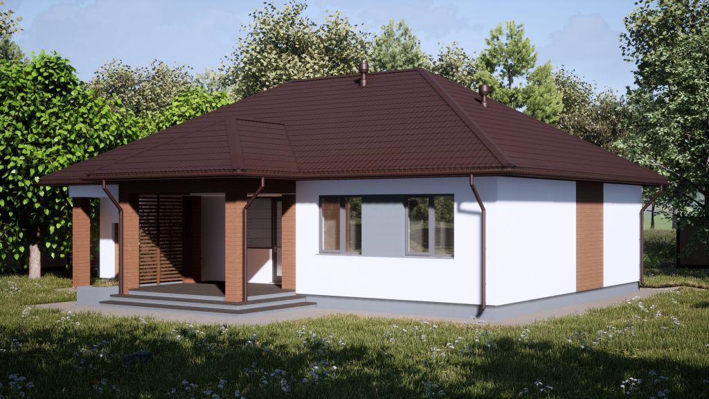 Этот проект дома может быть реализован в Оцилиндрованном бревне камерной