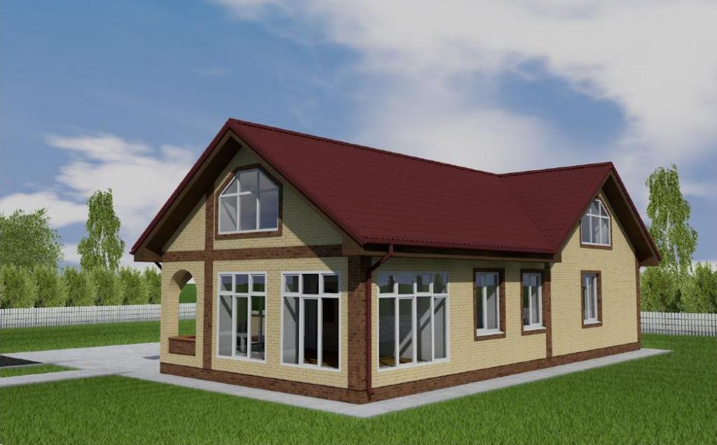 Этот проект дома может быть реализован в Оцилиндрованном бревне камерной