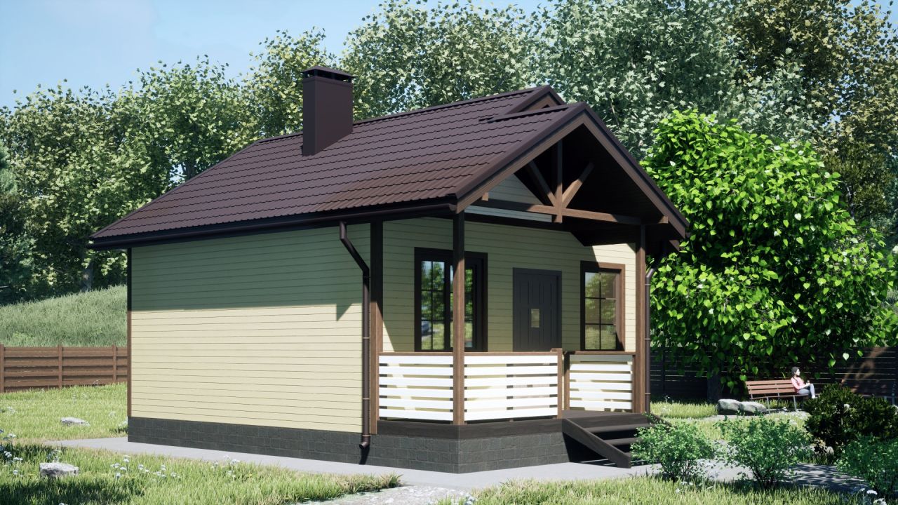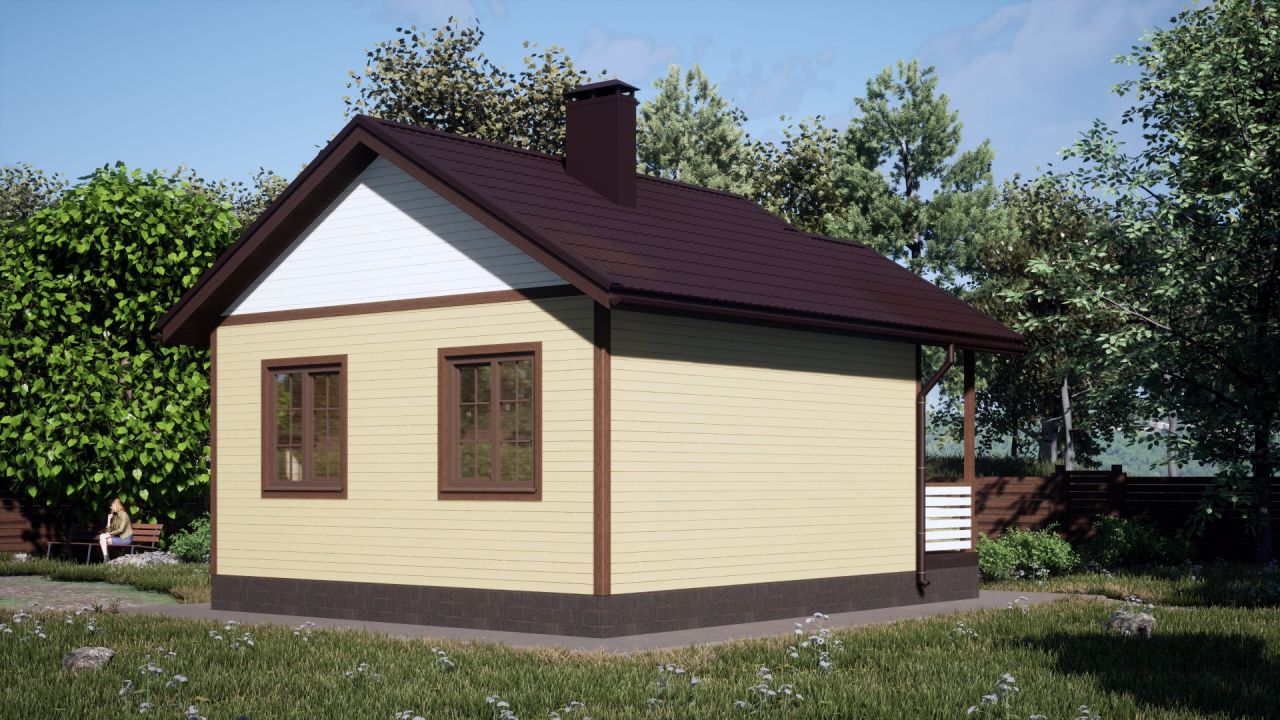 Готовый загородный дом сезонного проживания и временного пребывания зимой. С обшивкой имитацией стен снаружи, утепленными полами и потолками, окнами и дверью.