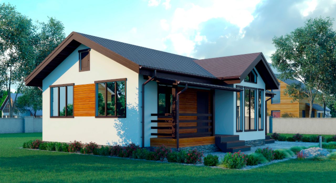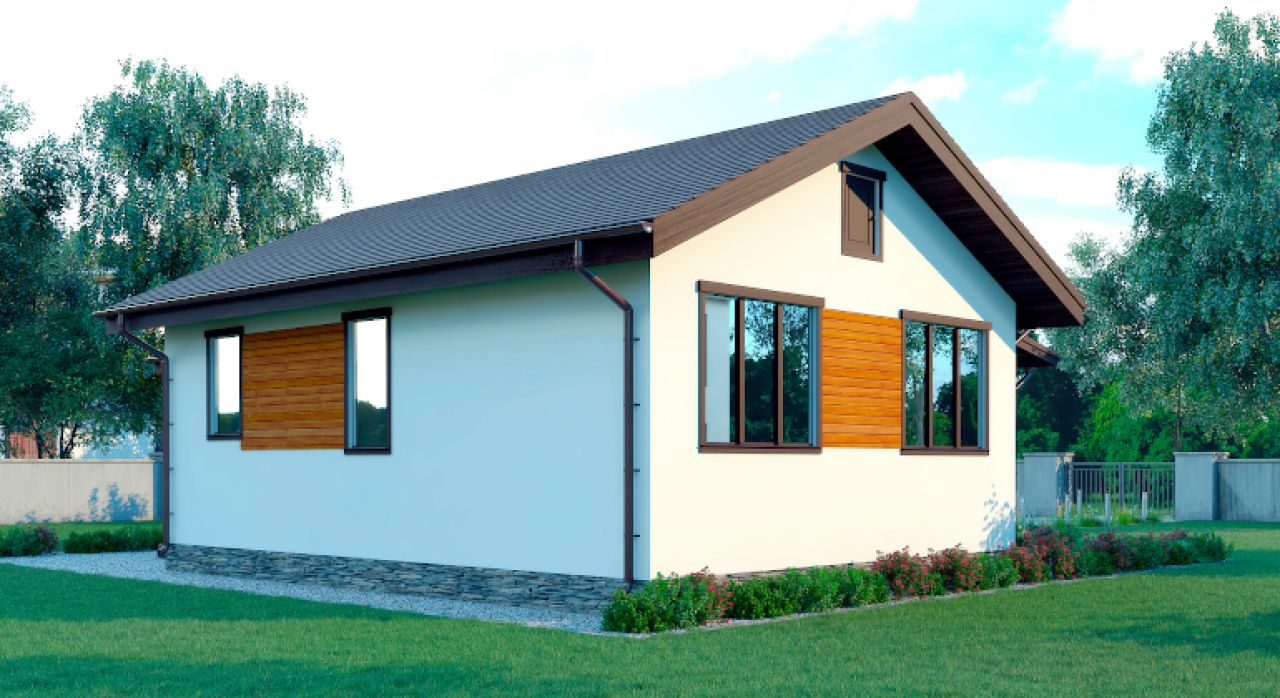 Готовый загородный дом сезонного проживания и временного пребывания зимой. С обшивкой имитацией стен снаружи, утепленными полами и потолками, окнами и дверью.