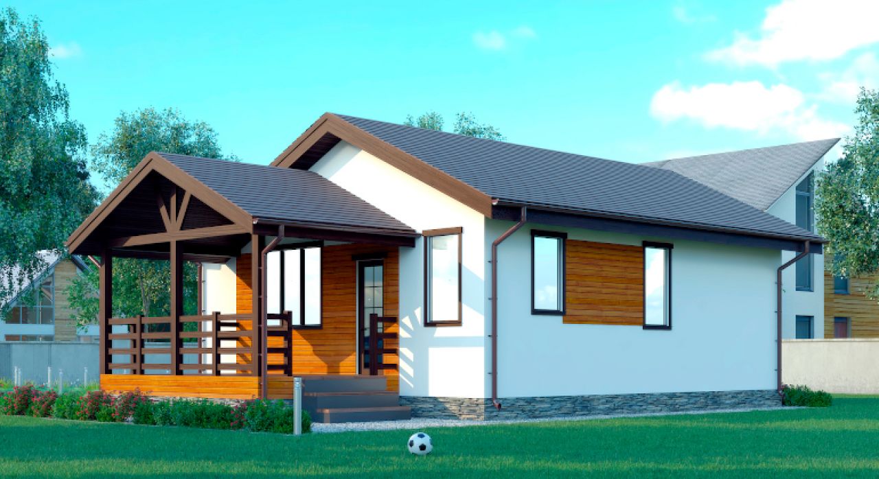 Если вы планирует поэтапное строительство дома, то эта комплектация для вас. Весь конструкционный силовой каркас стен с черновой обшивкой, перекрытиями и кровлей с покрытием.