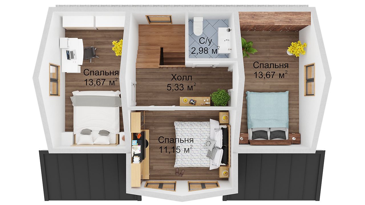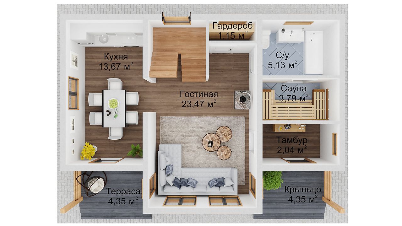 Если вы планирует поэтапное строительство дома, то эта комплектация для вас. Весь конструкционный силовой каркас стен с черновой обшивкой, перекрытиями и кровлей с покрытием.
